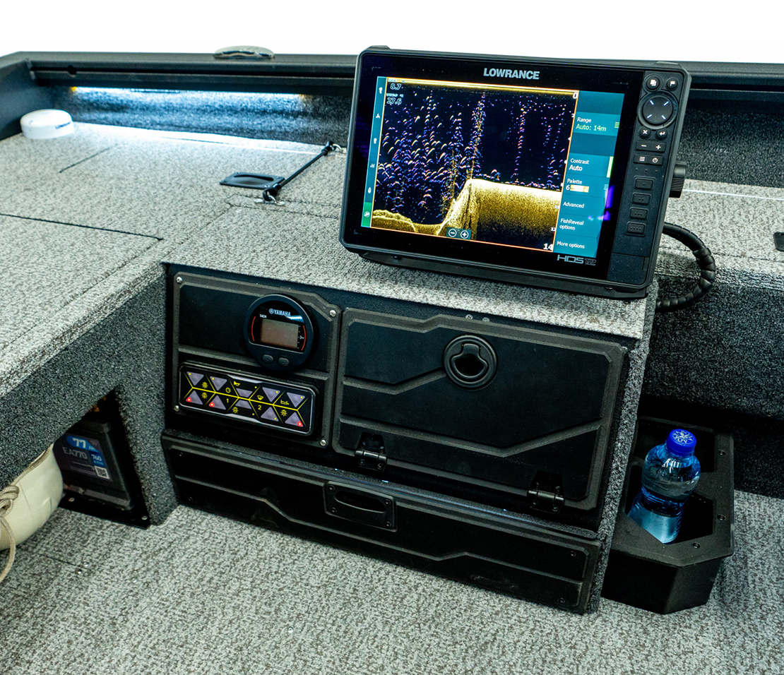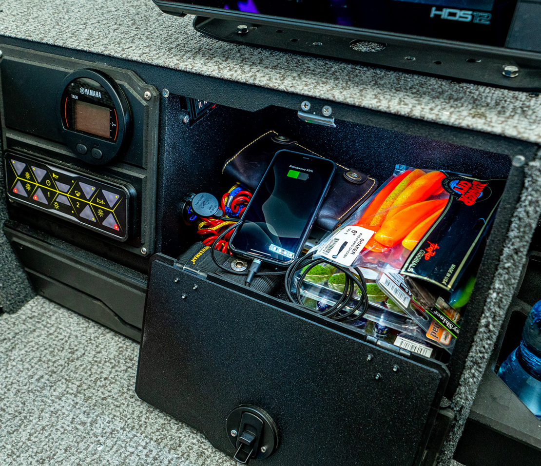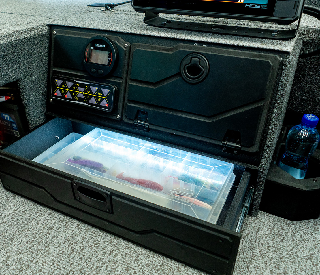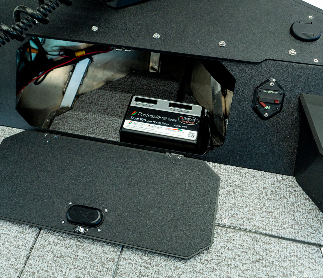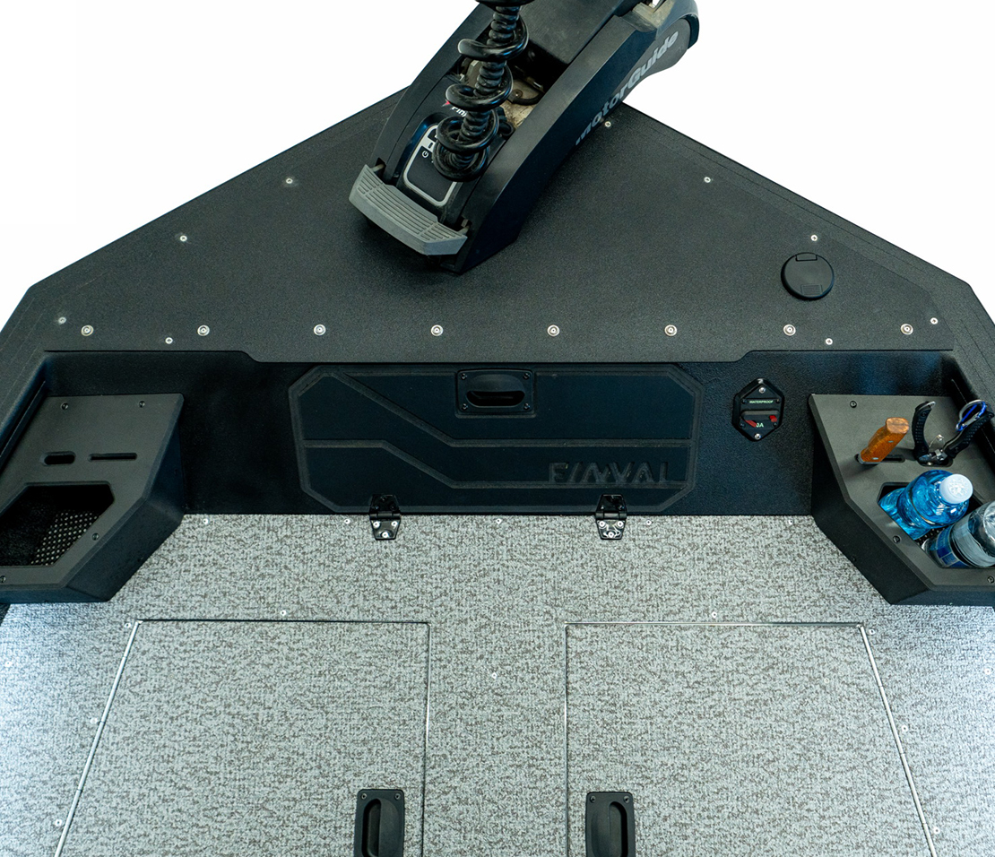 The front platform has factory space for the electric motor battery and charger, two organizers for the launches and two completely dry compartments.