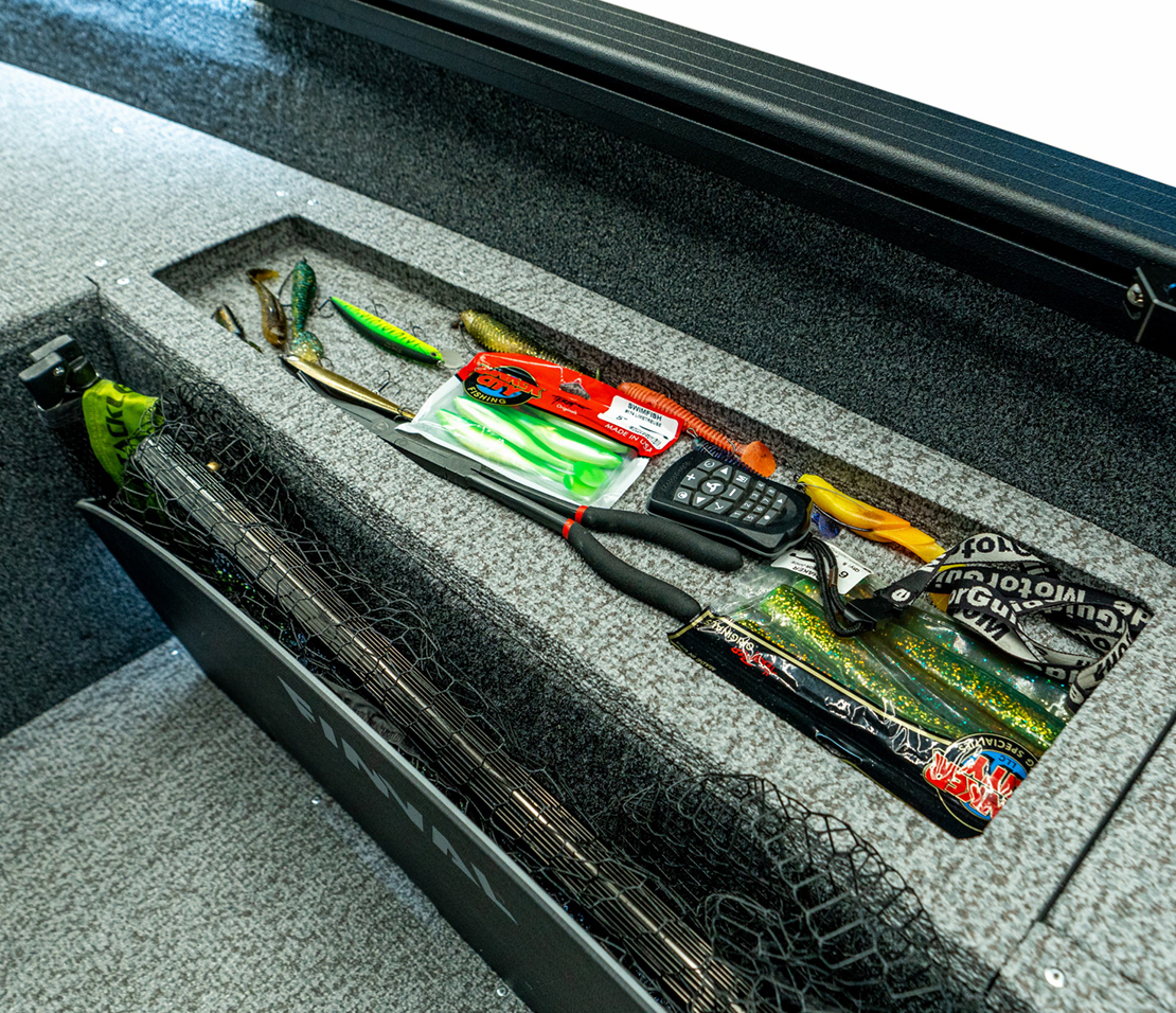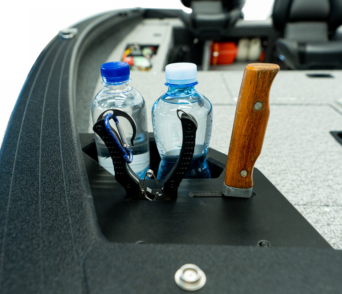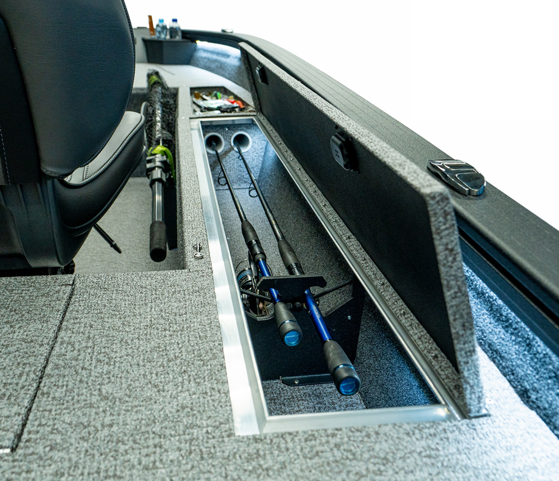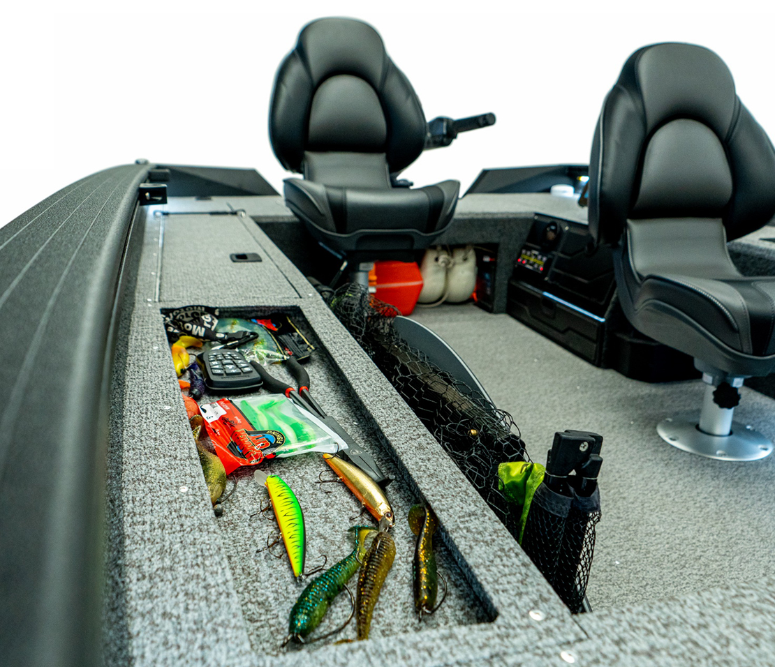 The front platform has factory space for the electric motor battery and charger, two organizers for the launches and two completely dry compartments.