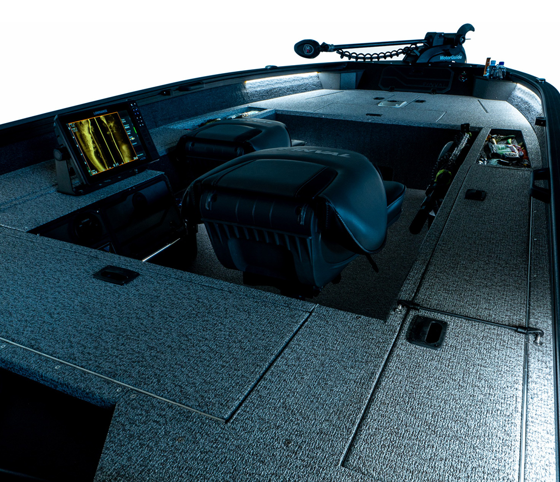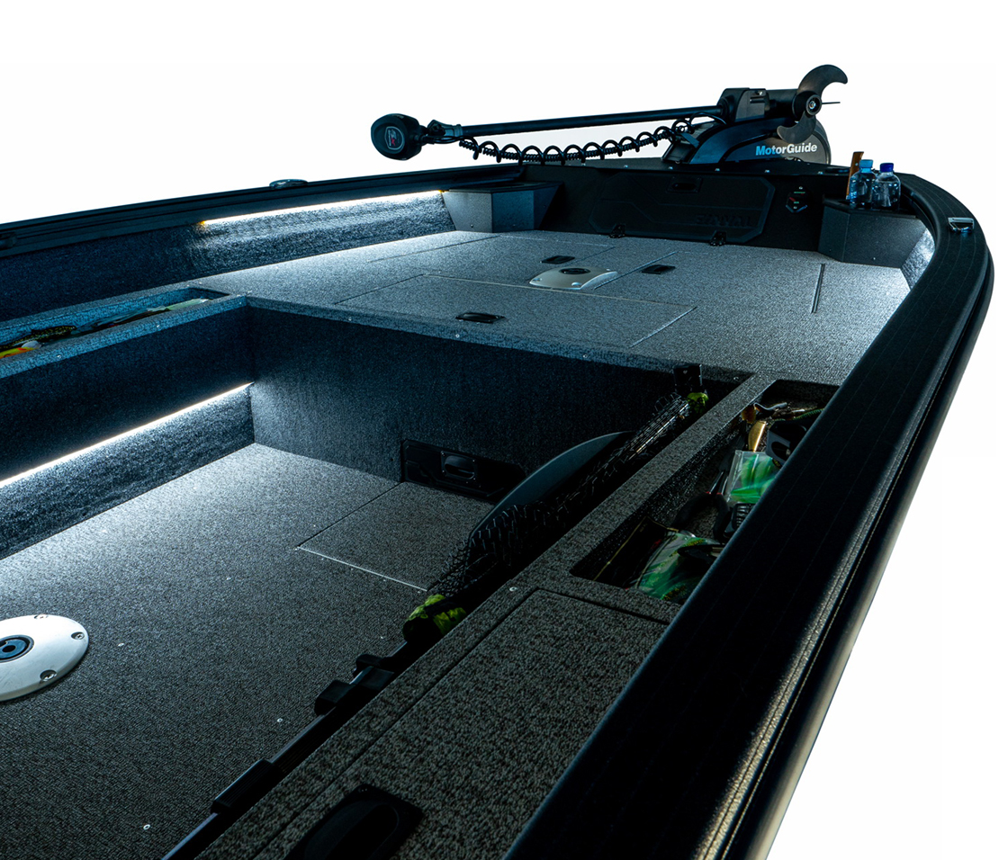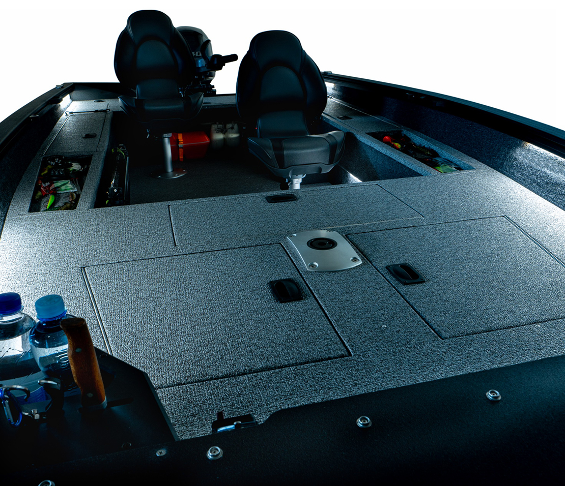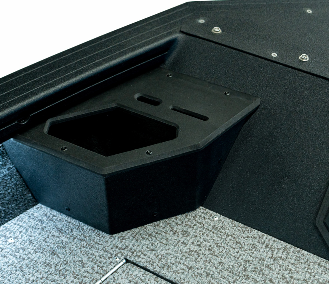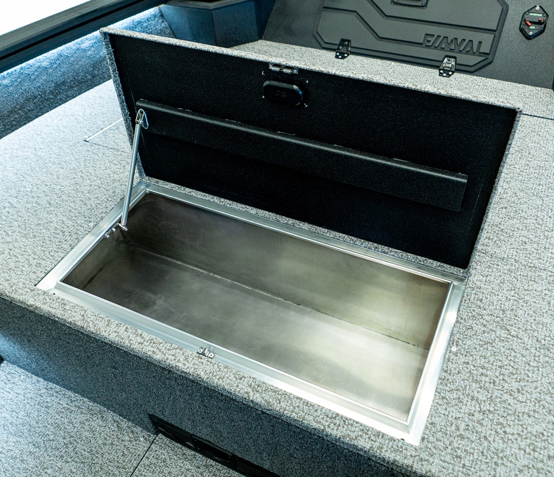 The front platform has factory space for the electric motor battery and charger, two organizers for the launches and two completely dry compartments.