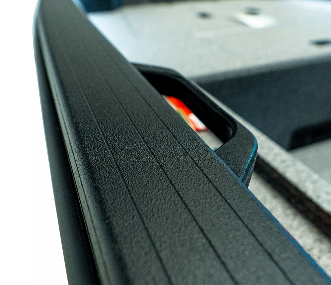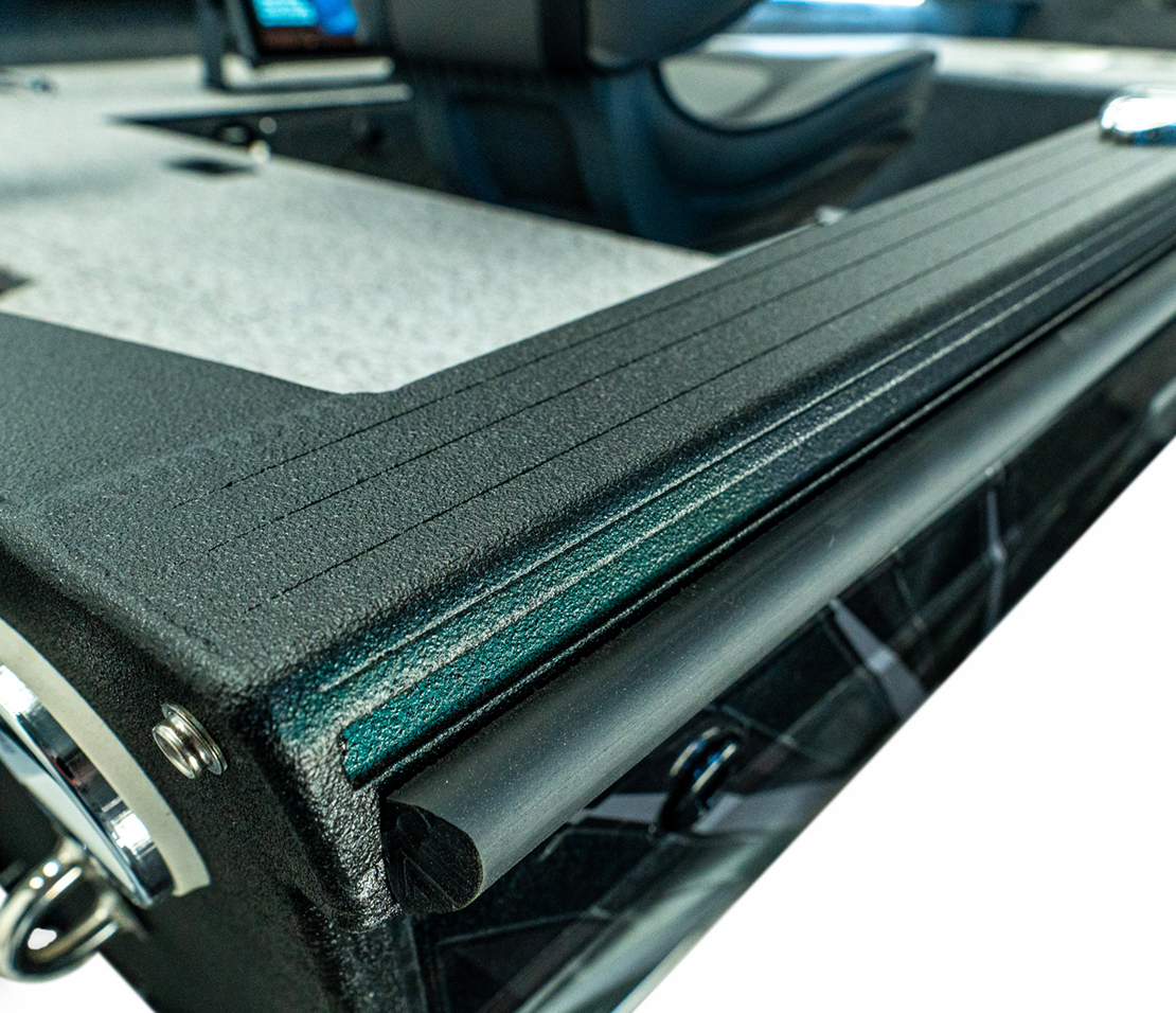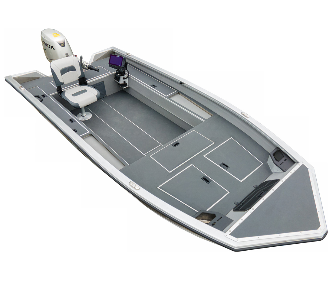 With an improved design compared to the Rangy 510 model with EVA inserts on the platforms, on the outer shelves and in the cockpit, the new smaller but very spacious version is made only of marine aluminium AlMg4,5Mn (5083), 1,5; 2 and 3 mm thick, with no traces of wood in the boat structure. And the upper trim also comes with something new, namely the rubberised sidewall, which protects the head and the outer collar.