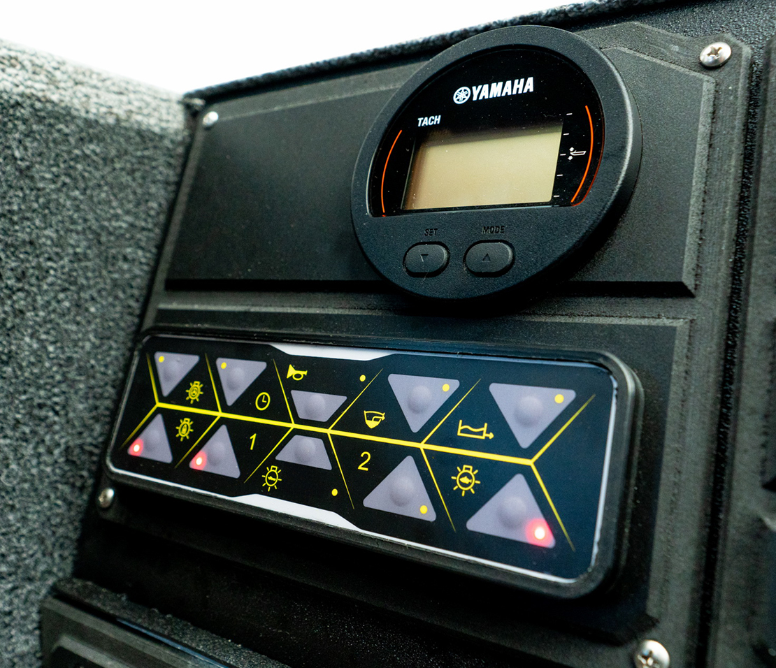 The electrical equipment is also pre-installed from the factory and includes automatic bilge pump, 4-button electric panel, fuse panel, 12V double USB socket and wiring for the electric motor.