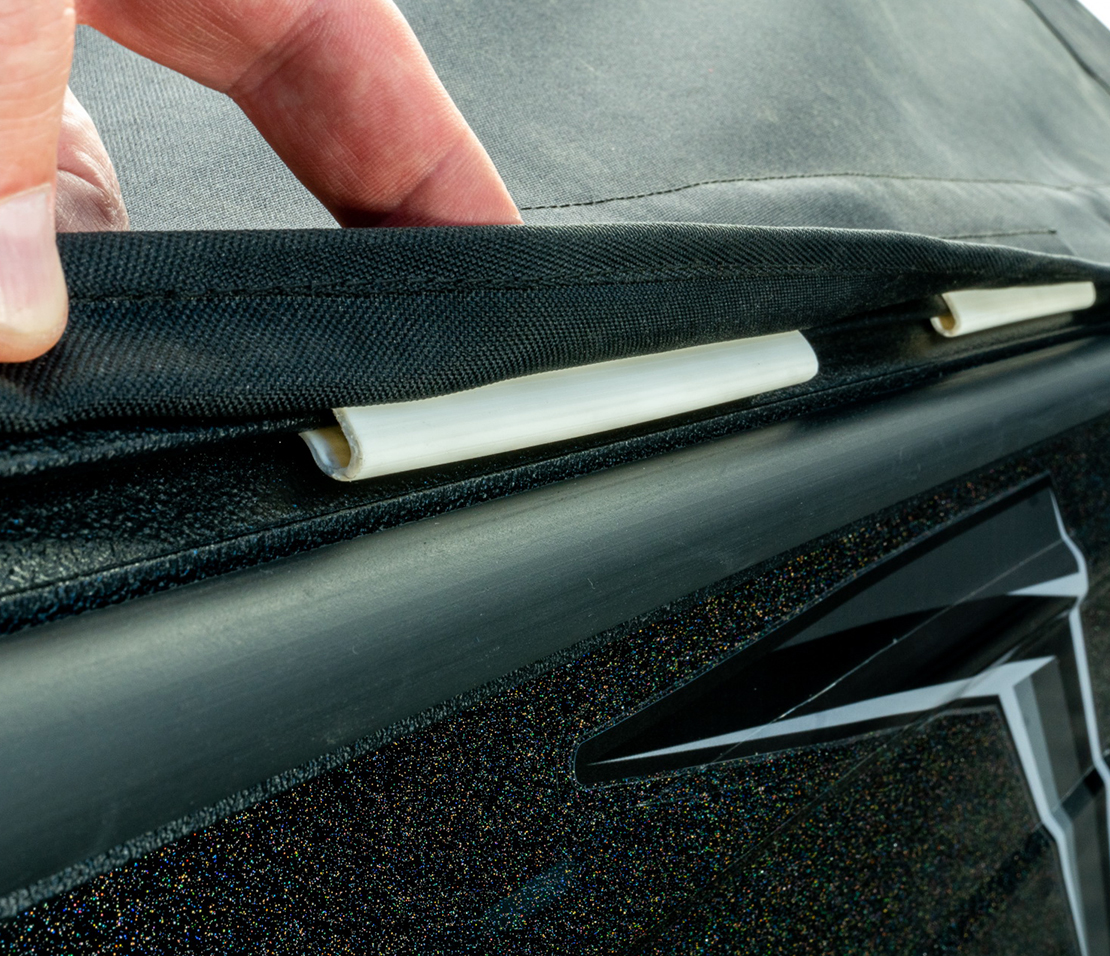 The cockpit has shelves on both sides for storing the poles on the move, with elastic straps included, and two dry compartments for poles up to 2.7m.