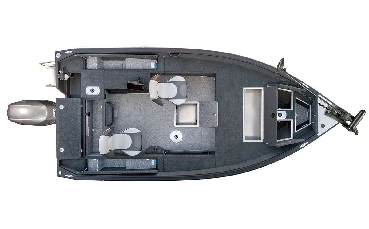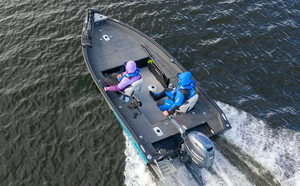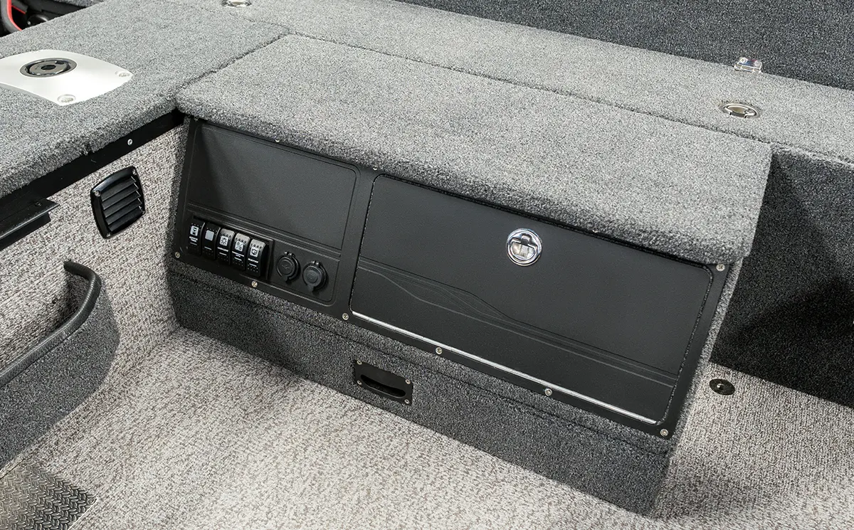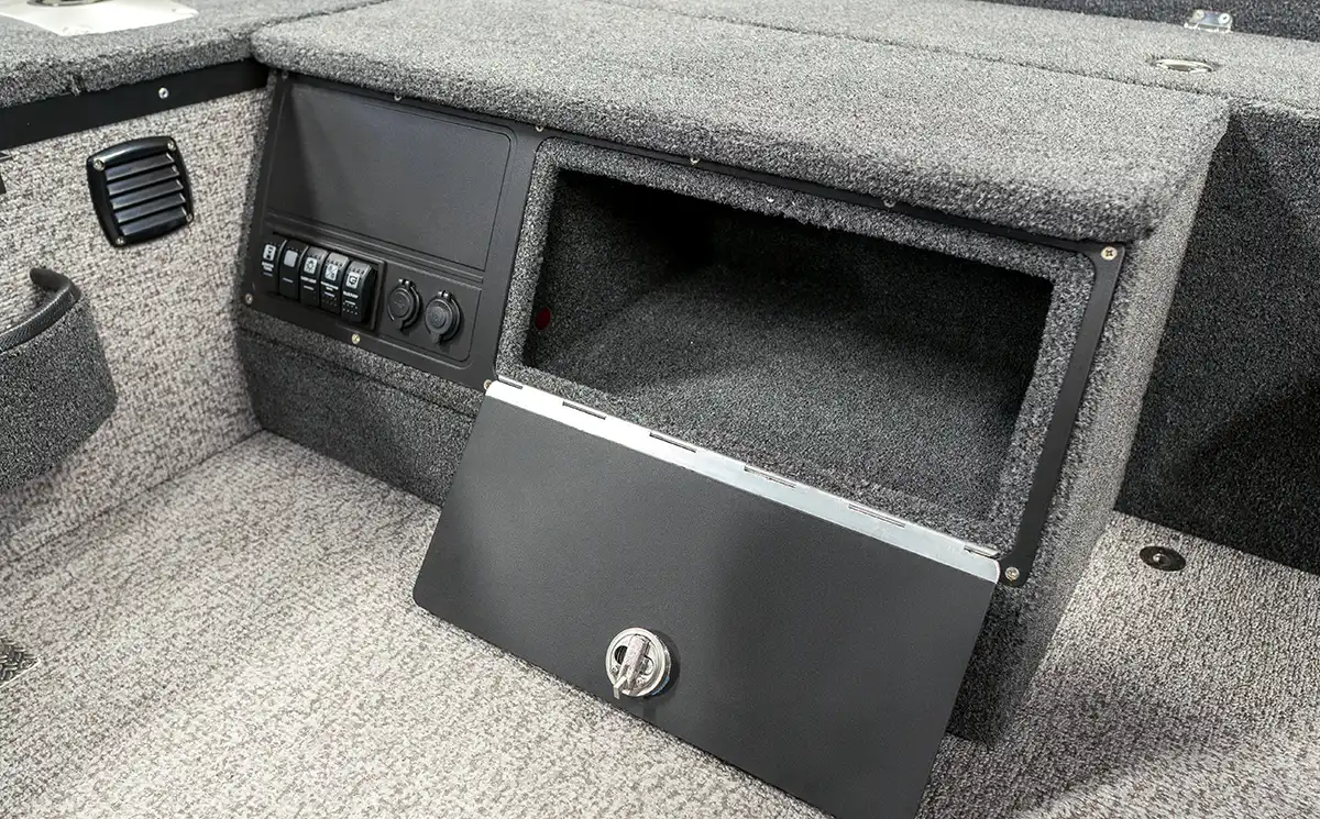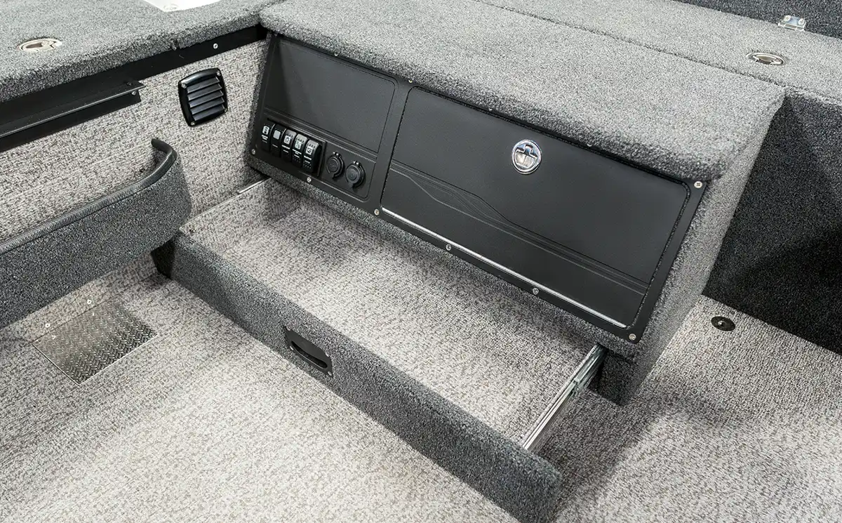 Finval 475 Evo Tiller is well equipped for trolling and vertical fishing. The width of 212 cm with a length of 472 cm makes is an absolute record among boats of this size that ensures maximum space and stability. Two echo sounders with a screen diagonal of 12’’ and more can be easily mounted on the driver console. The large glove boxes in the driver console have plenty of space for boxes with your favorite baits. Organizers for fishing tackle, cup holders, and rod holders can be placed anywhere you want. And all this at arm’s length. If you are looking for a spacious boat up to five meters long and want to fish with maximum comfort, Finval 475 Evo Tiller is an ideal option.