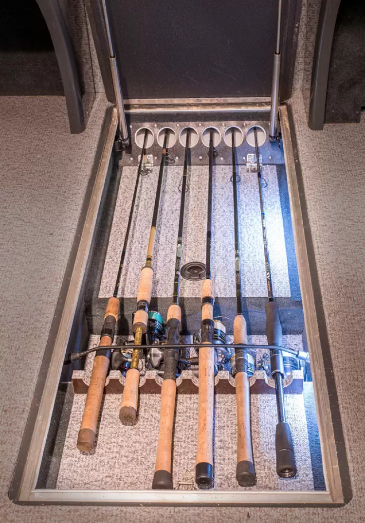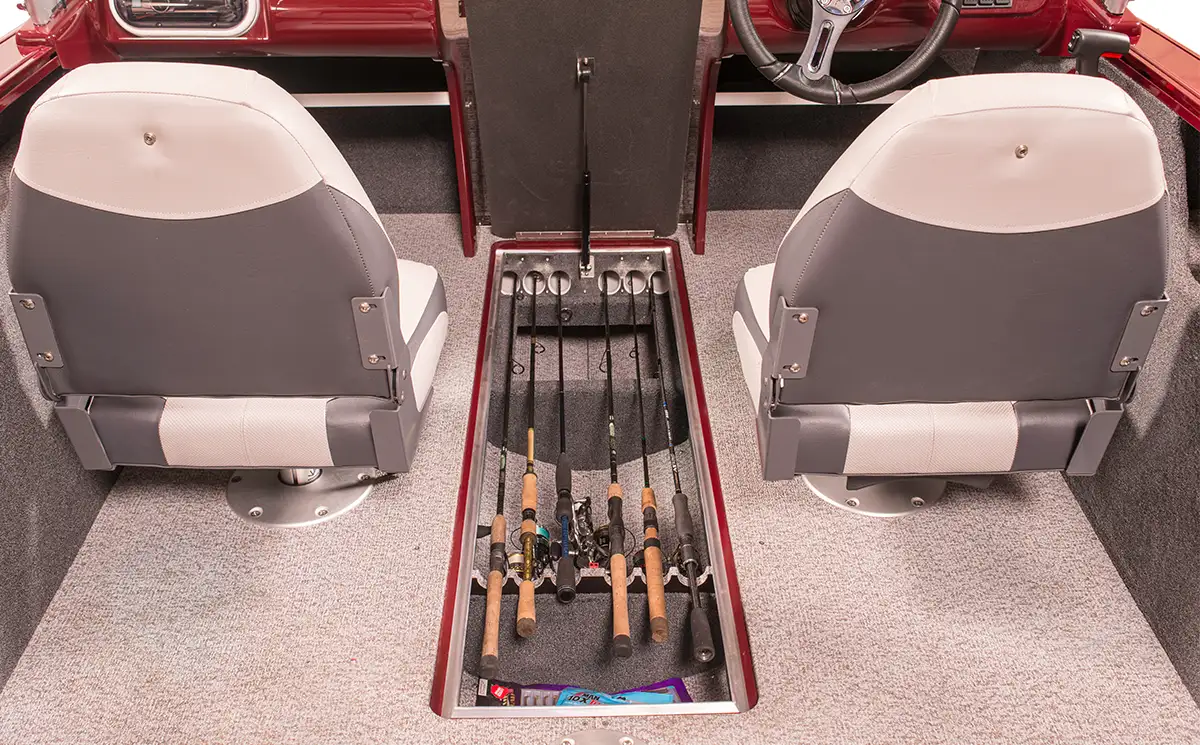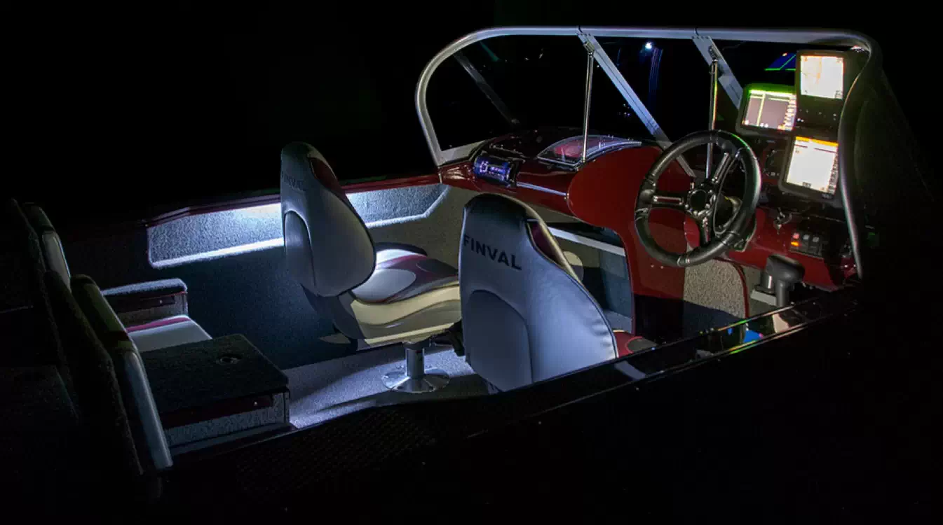 The Finval 505 FishPro has everything you could want from a 5-meter long boat. Heavy-duty hull and excellent seaworthiness, which is so important on big rivers and lakes. Absolute safety when passing a wave at any angle, the capability of making a turn even at a speed of 60 km/h. 505 FishPro has 4 internal layout options. So, you can choose the one that is best for you. Each boat is equipped with a locker accommodating 6 rods up to 2.7 m long and a 110-liter livewell. Personal items and baits can be stored in wide side shelves and deep storage compartments. All this improves comfort and makes your use of Finval 505 FishPro enjoyable and unforgettable.