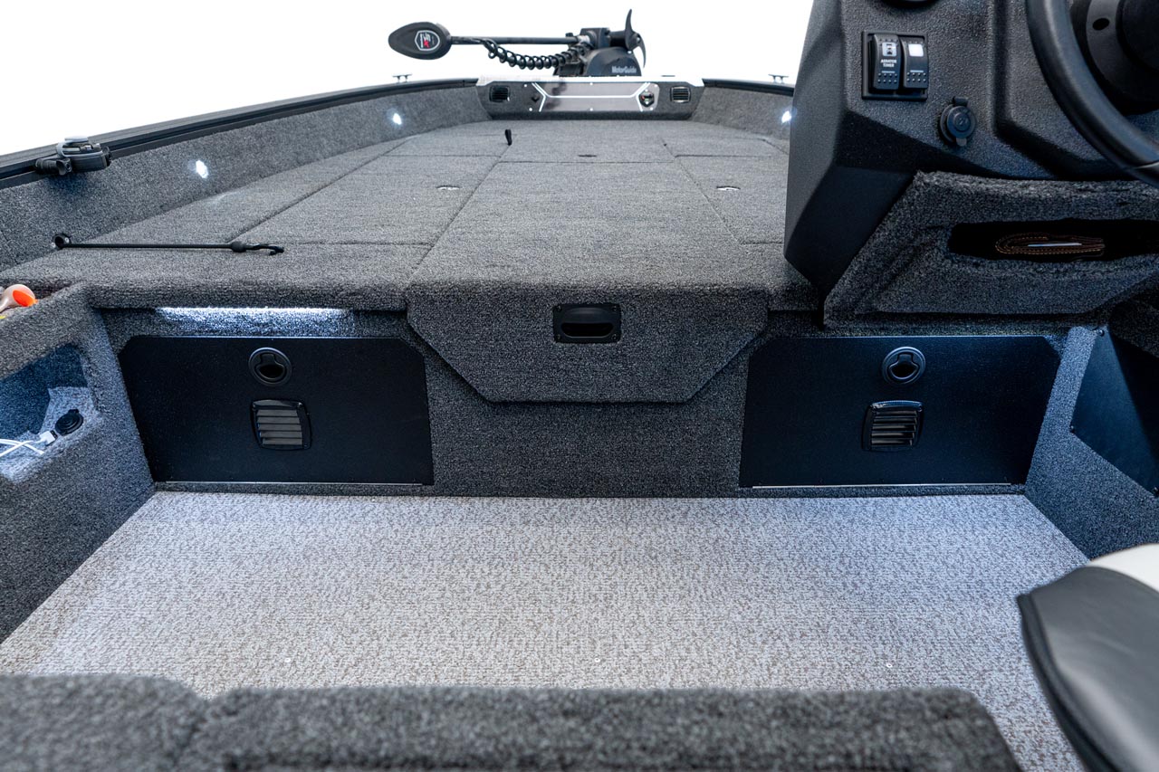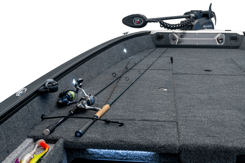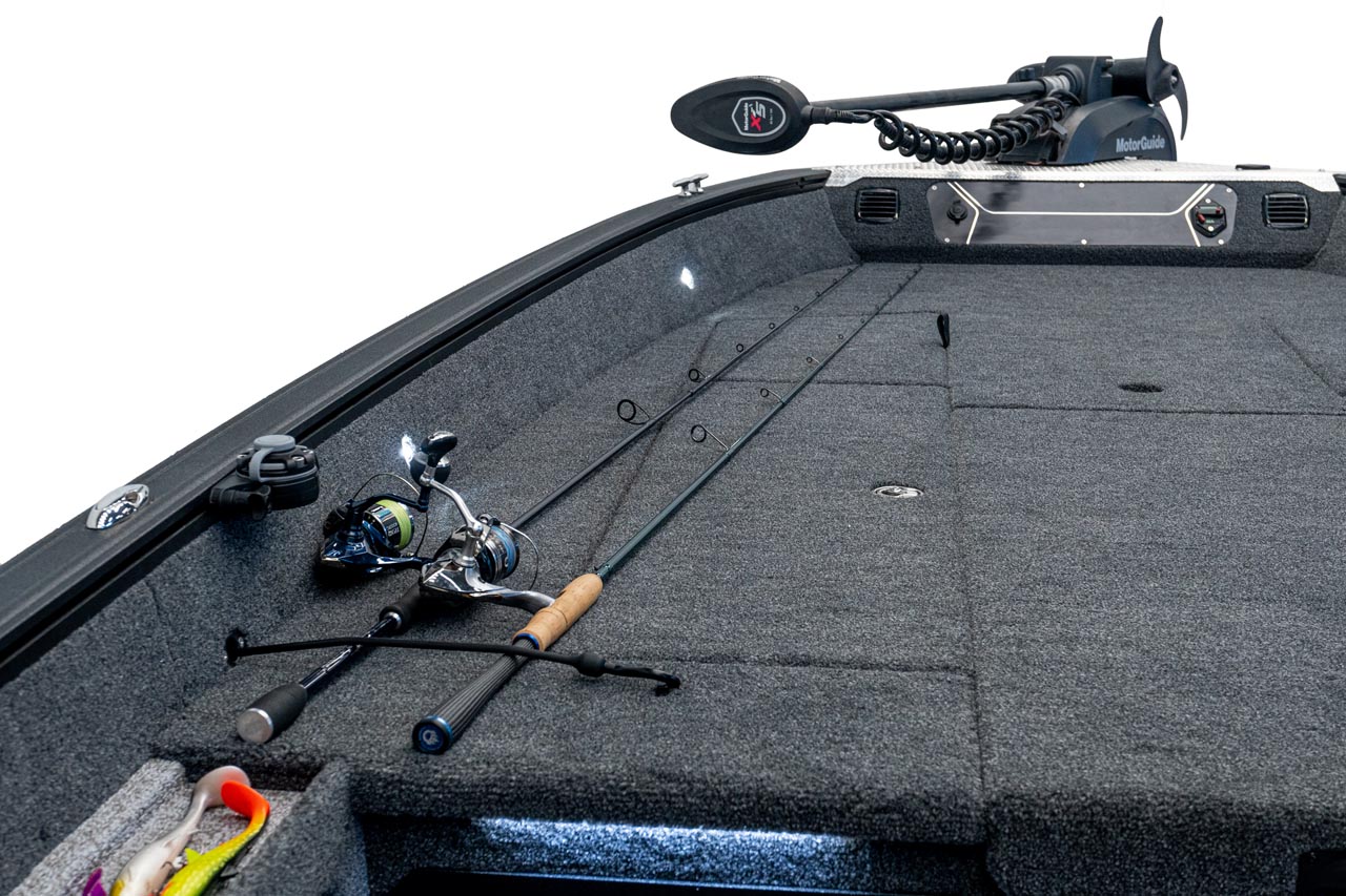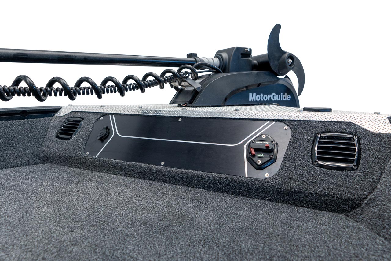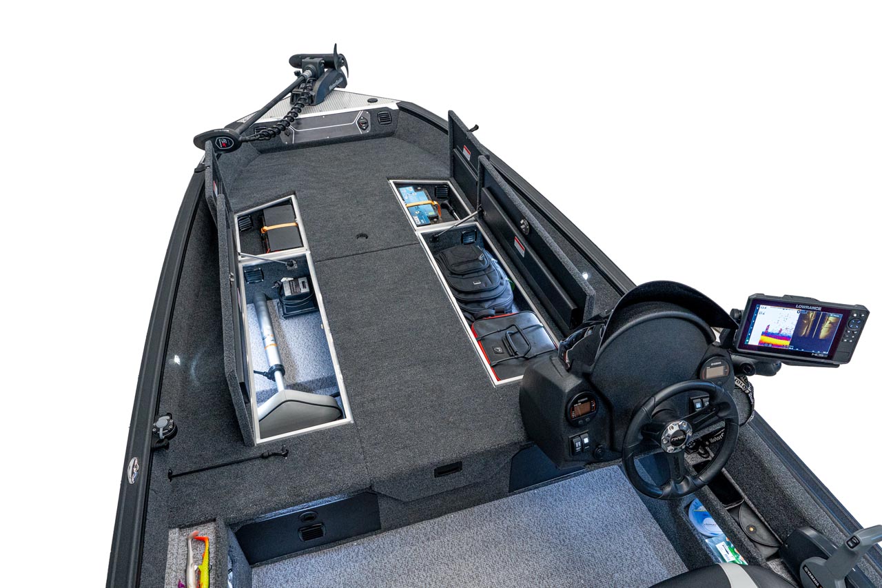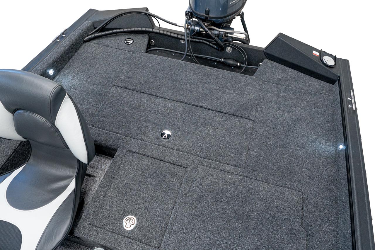 The Finval Rangy 510 BSC, an aluminium fishing boat, is meticulously engineered for skilled anglers. This five-meter aluminium boat boasts an impressive capacity for securely accommodating up to ten spinning rods, each extending up to 2.7 meters in length. Its design, reminiscent of traditional bass boats, features aft placement of the livewell and a generously sized bow deck.