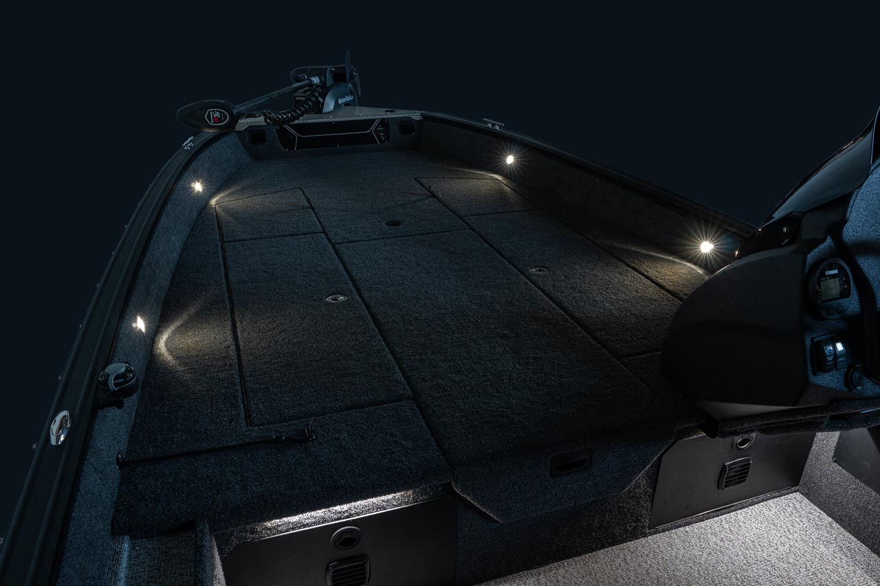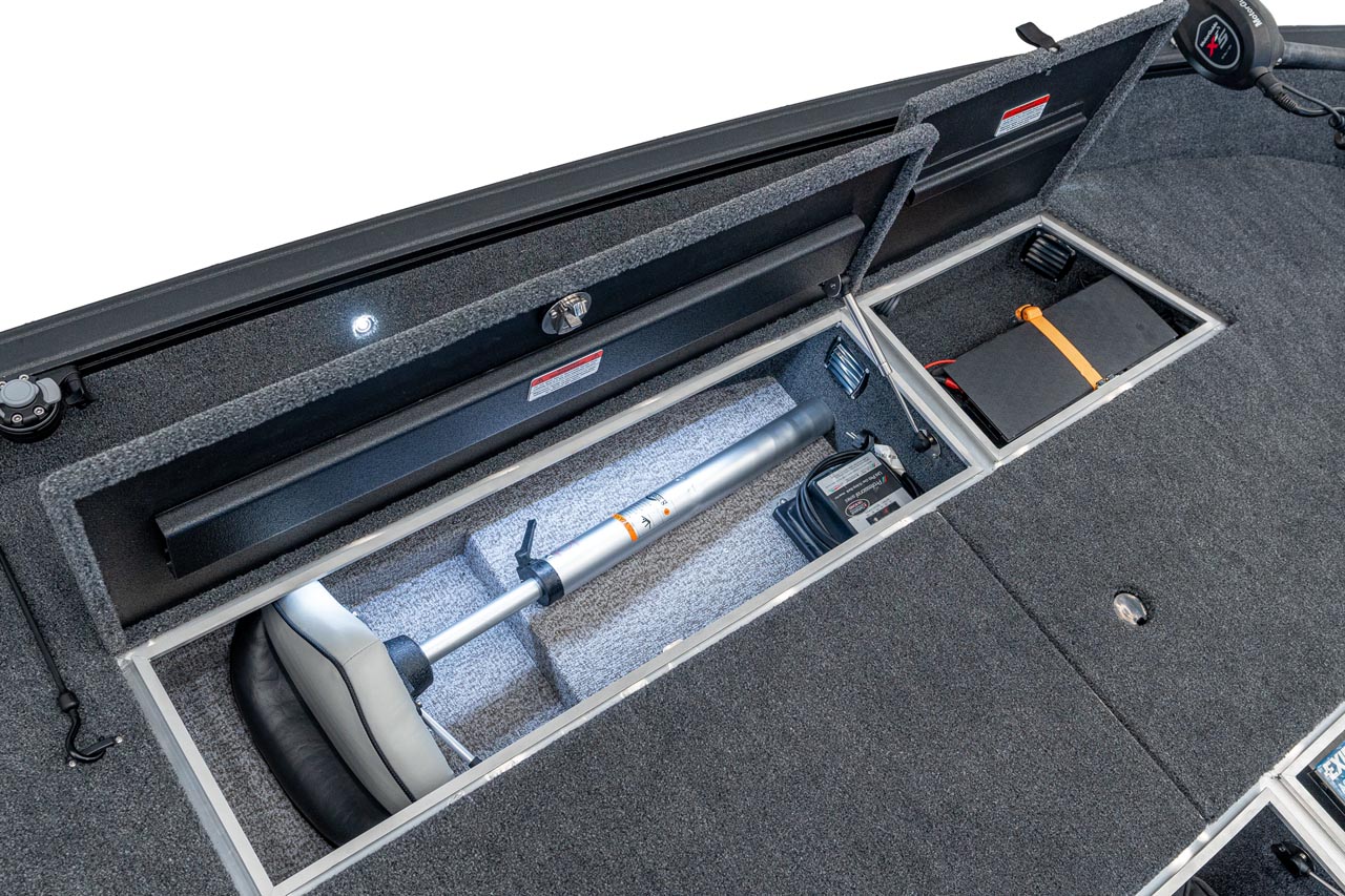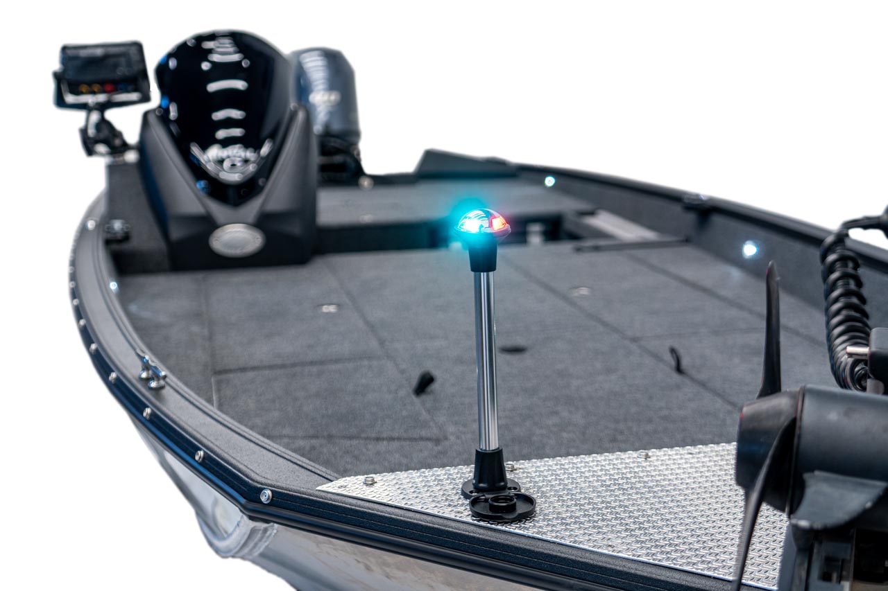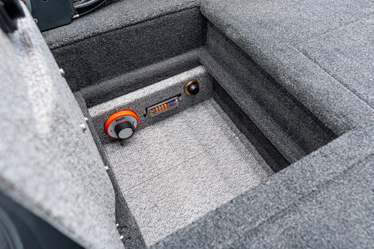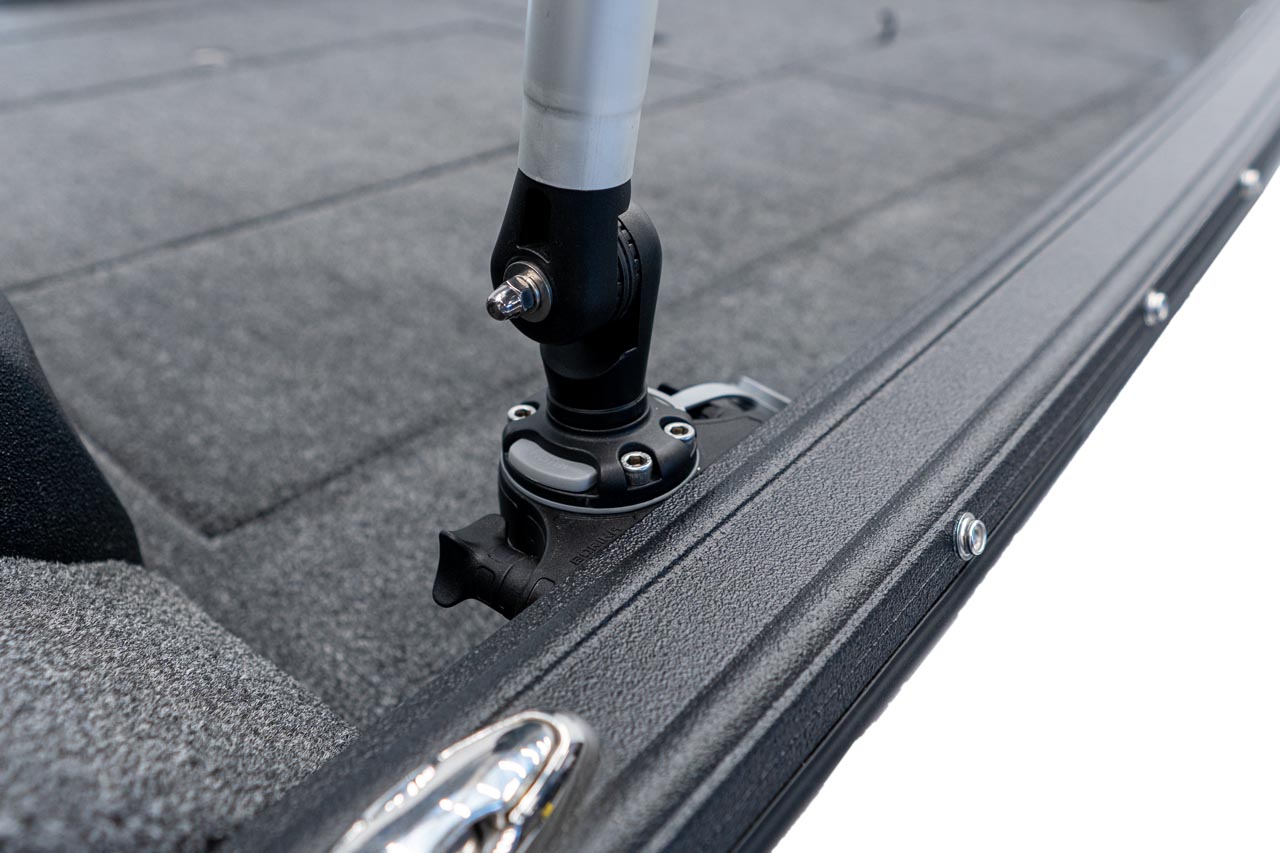 The Finval Rangy 510 BSC, an aluminium fishing boat, is meticulously engineered for skilled anglers. This five-meter aluminium boat boasts an impressive capacity for securely accommodating up to ten spinning rods, each extending up to 2.7 meters in length. Its design, reminiscent of traditional bass boats, features aft placement of the livewell and a generously sized bow deck.