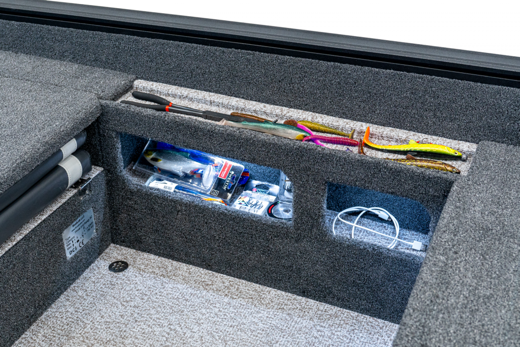 The innovative convertible seat, integrated into the aft deck, enhances freedom of movement within the cockpit, a vital aspect for any fishing expedition. This aluminium fishing boat also excels in storage solutions, with a plentiful supply of storage boxes and strategically positioned open alcoves for essential fishing gear. The Finval Rangy 510 BSC is an exceptional aluminium boat, perfect for those who cherish their time on the water and seek more frequent and rewarding fishing trips.
