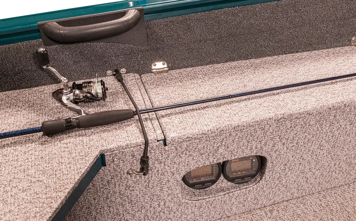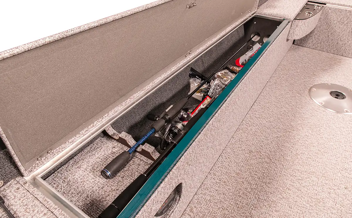 • Rubber holder for rods at portside and starboard shelves