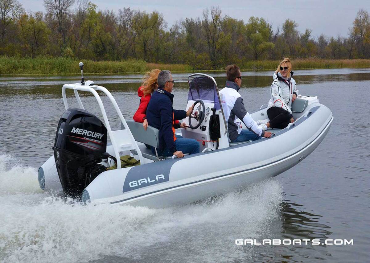 • Deep-V, powder-coated aluminum hull with «GALA TABS», hidden reinforced transom brackets and keel protector