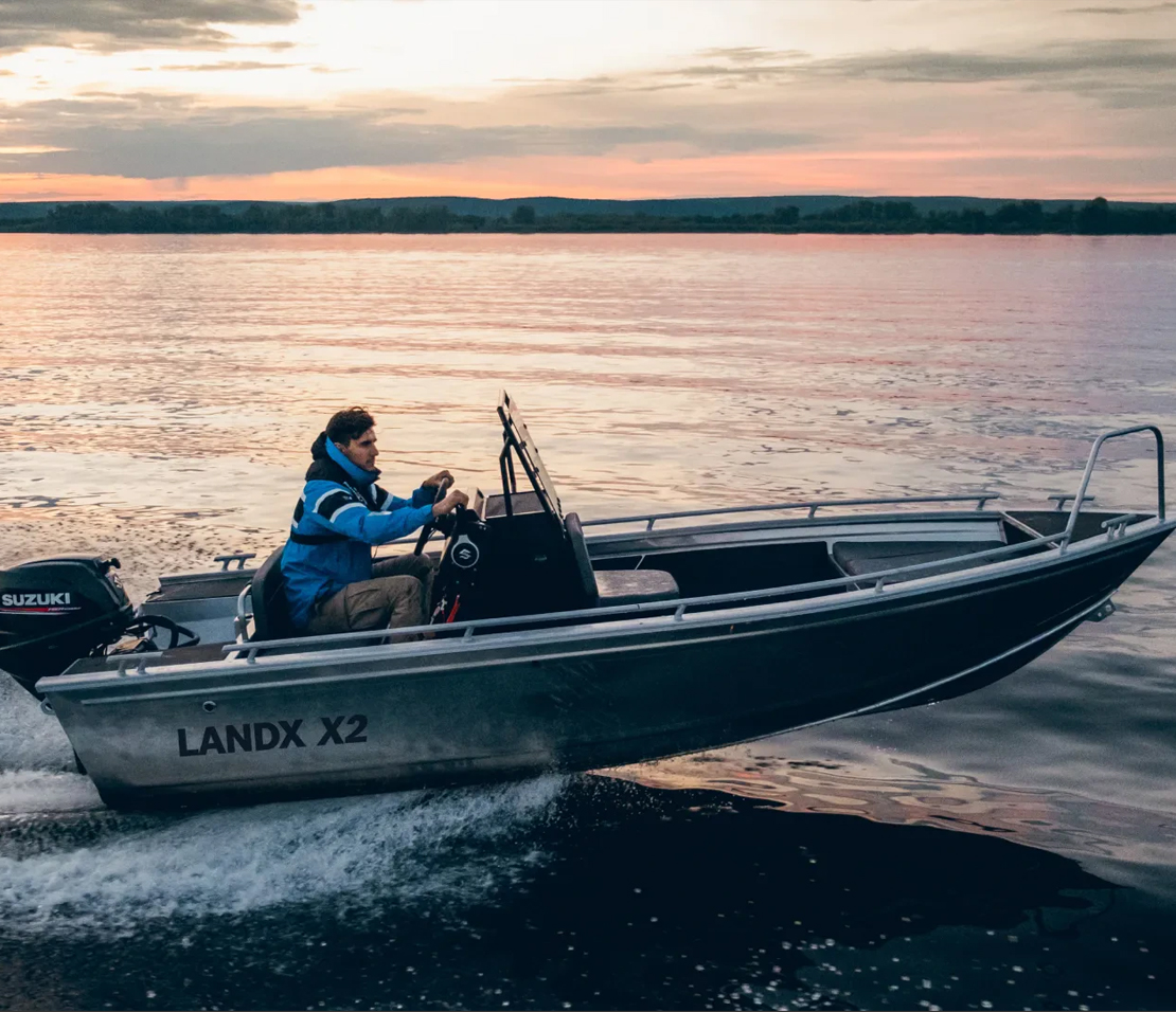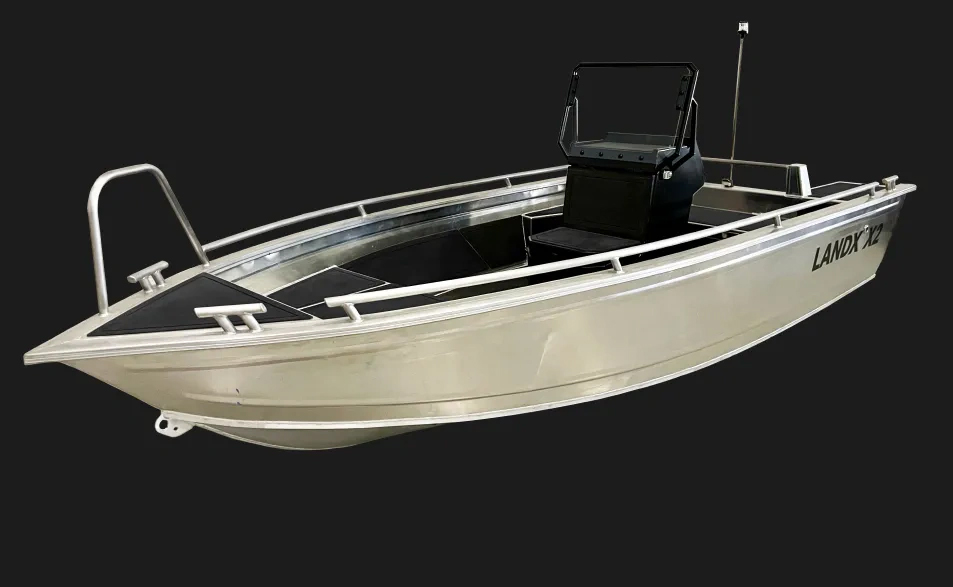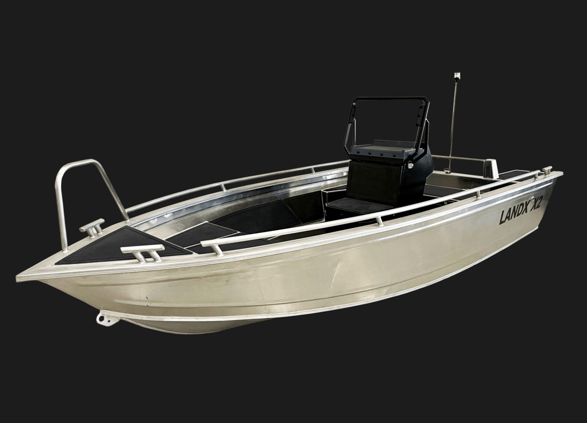Meet the LANDX X2, our smallest aluminum boat that can handle any adventure, whether it’s a leisurely cruise or a fishing trip. Despite its simplicity, this durable vessel is the perfect companion for any water activity – think of it as your trusty pair of jeans for the sea. The centrally mounted console and robust aluminum construction make accessing every corner of the boat easy. Whether you’re seeking an adrenaline rush or a peaceful day of fishing, the X2 is always up for the challenge. Get ready to experience rugged utility and reliable performance with the LANDX X2.