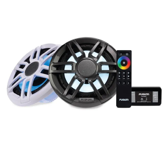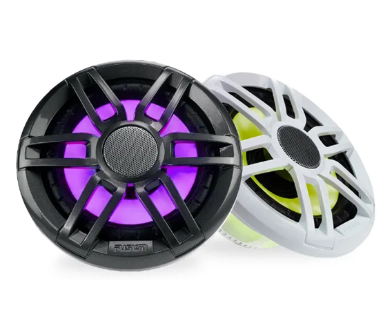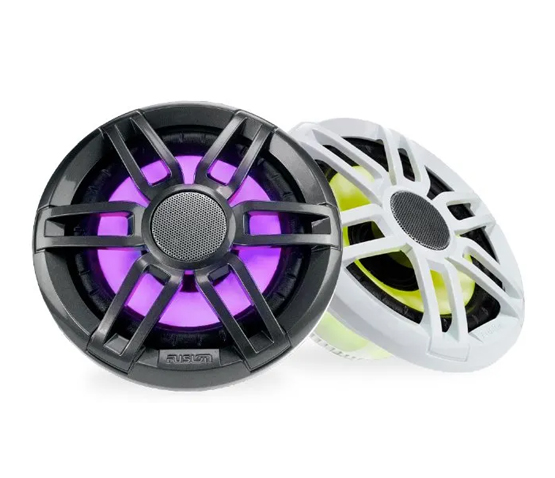 The XS Series sports style speakers with RGB LED lighting are available in 6.5” and 7.7” sizes with interchangeable sports white/sports gray grilles and feature multicolor illumination options.