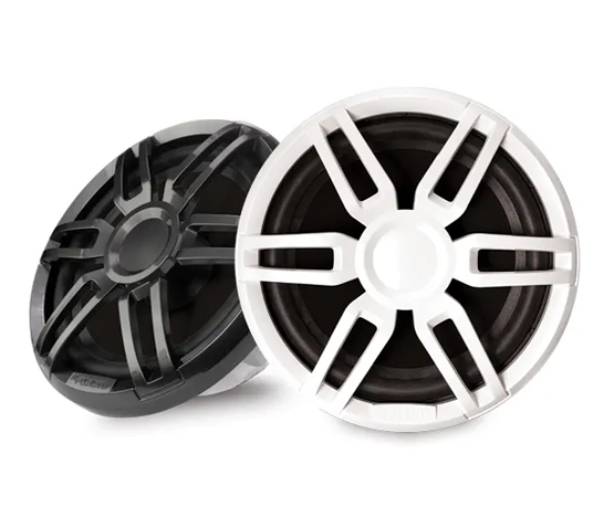 Subwooferul seria XS clasic este disponibil în dimensiuni de 10” cu grile alb clasic/negru clasic interschimbabile pentru un finisaj care nu se demodează, elegant, care se îmbină cu aspectul bărcii.