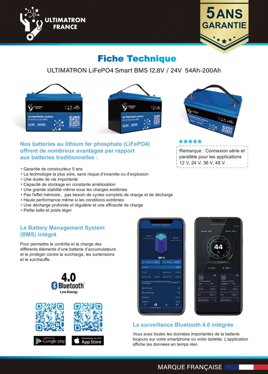 Ultimatron Baterie litiu 25.6V 100Ah LiFePO4 Smart BMS cu Bluetooth